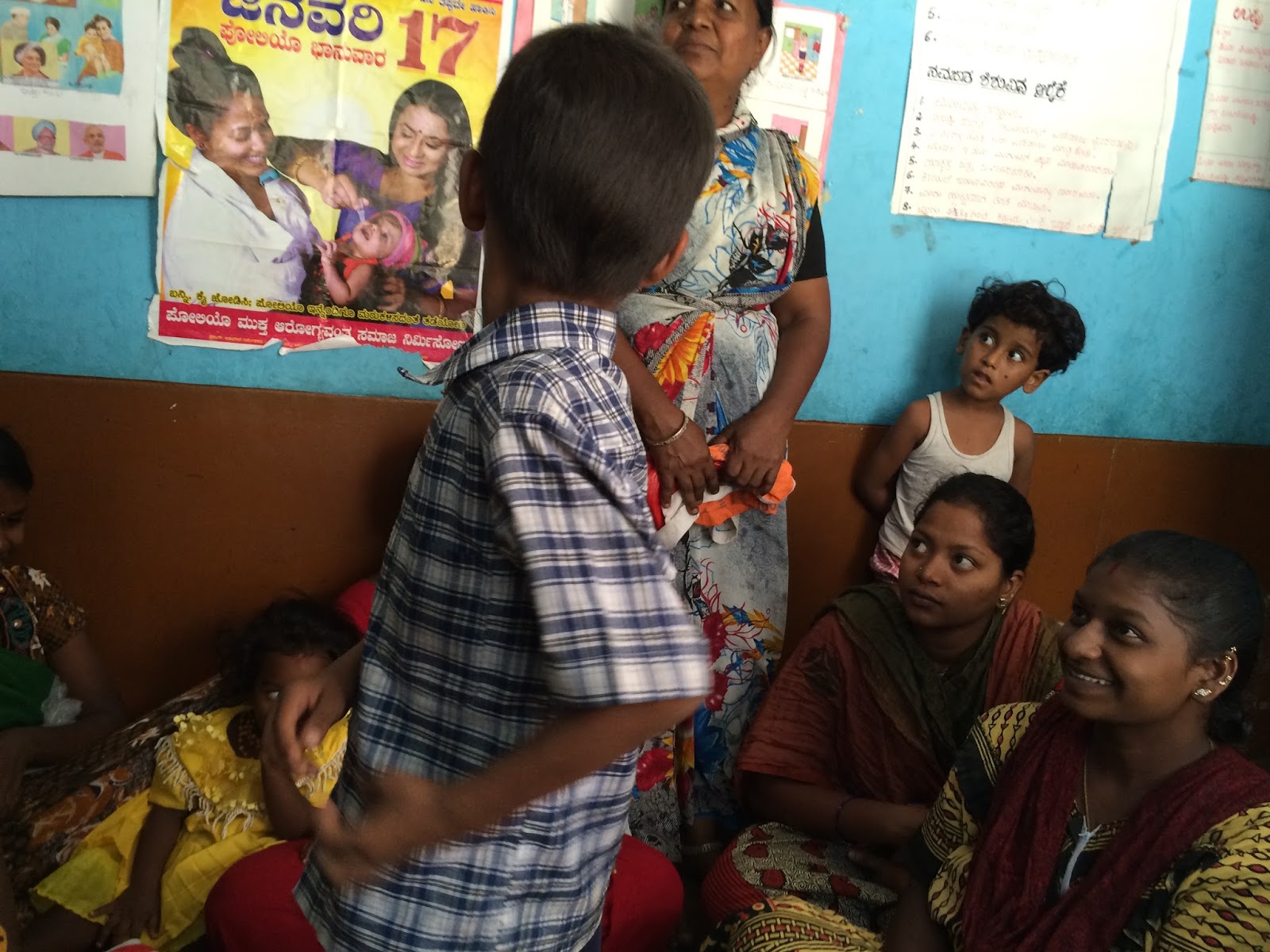 We soon discovered why! It is run by Ms. Virutha, who is the best ICDS worker I have come across so far in all my field visits. She is truly an amazing person, sincere and committed to her work and genuinely cares for the people she serves. She runs the place like a nursery with various posters, pictures and keeps it very clean and inviting for kids to spend their time. Parents that showed up sang praises of Ms Virutha and said she is the reason the kids love to come to this place. Unlike the other center we just visited this one had more than 10 kids already much before lunch time.